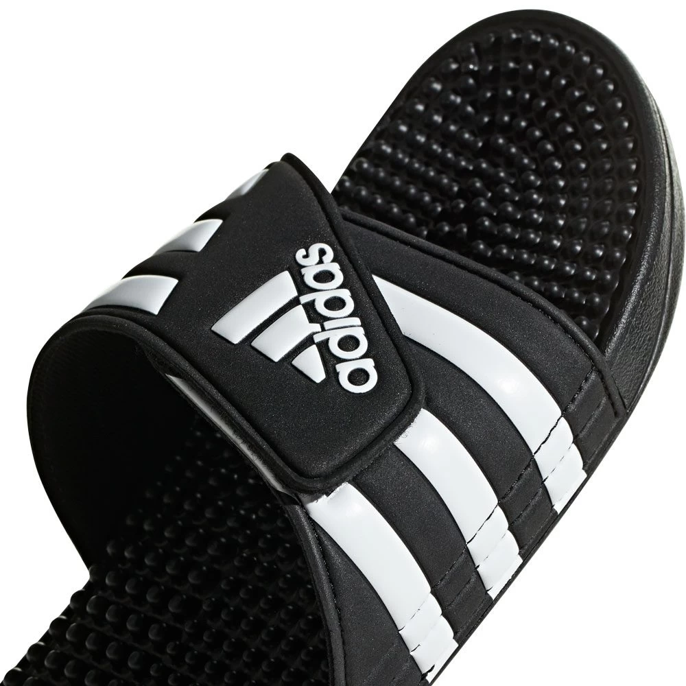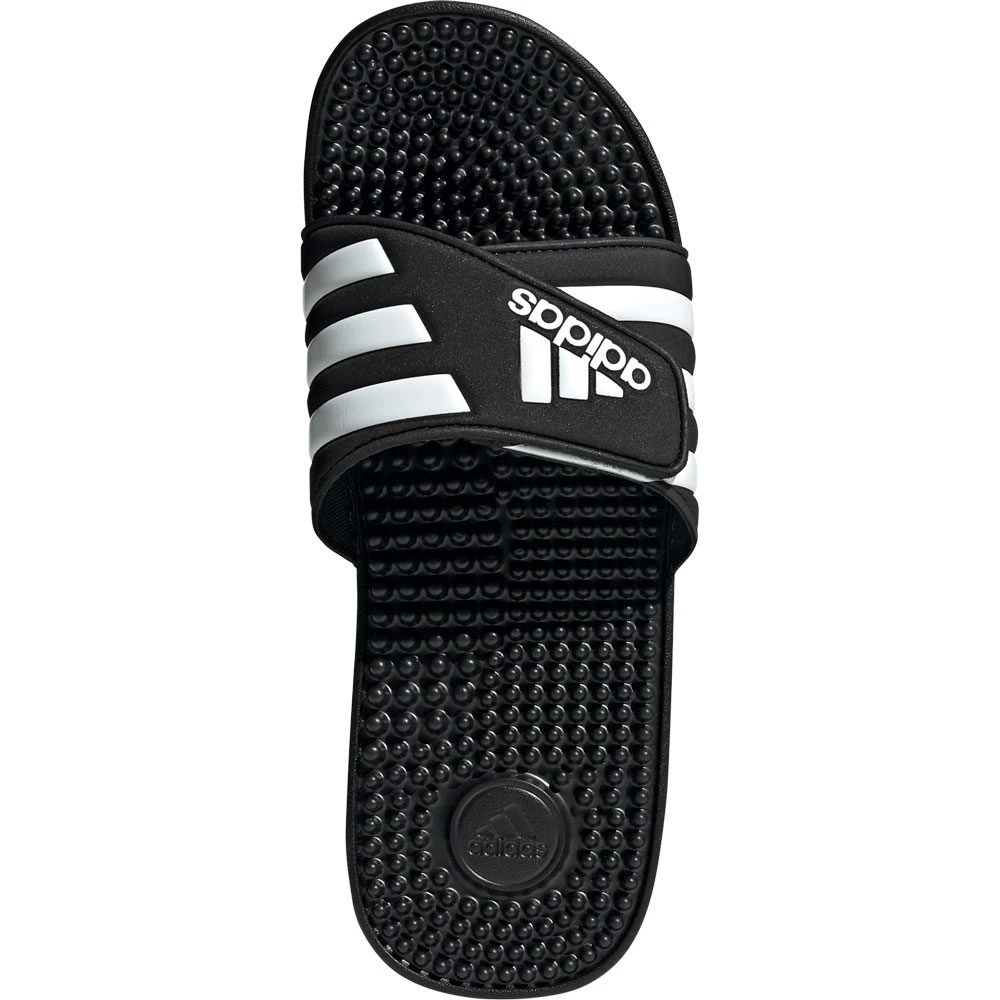 These soft slides have an adjustable bandage-style upper and a plush, cushioned midsole. Massage nubs along the footbed provide relief with every step.