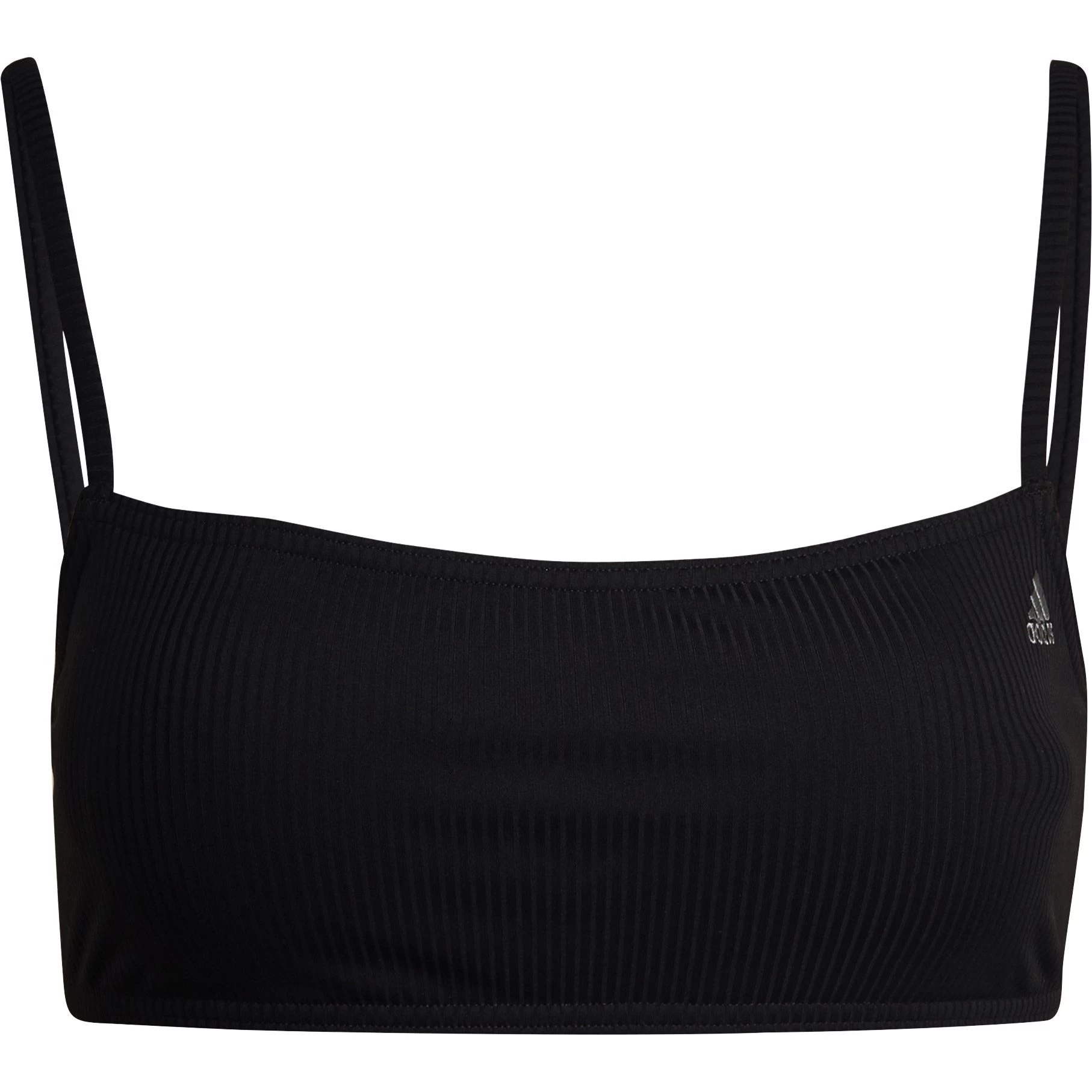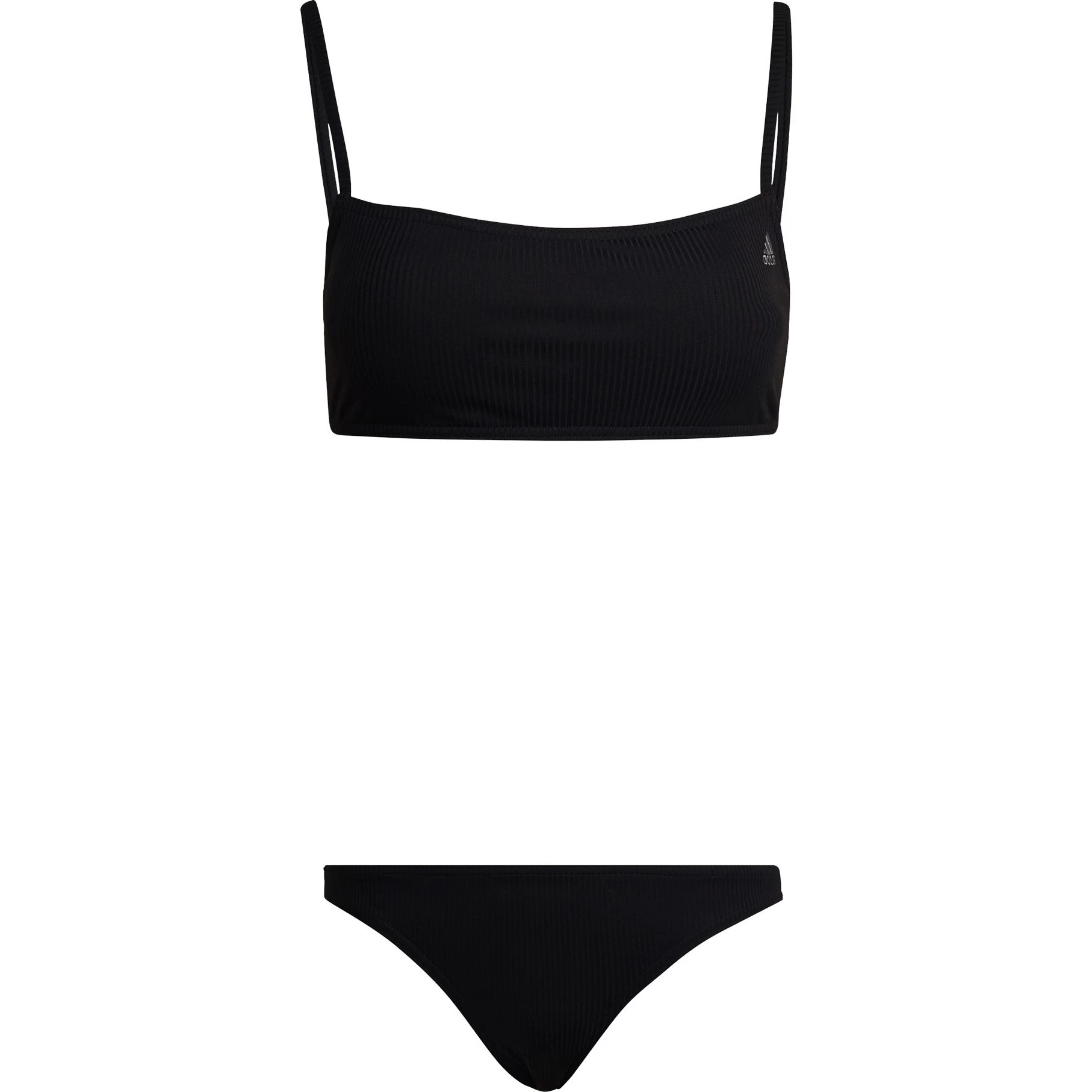 Inspired by the timeless classic, this adidas bikini brings simplicity and elegance to a day at the beach or pool. Ribbed fabric is soft and comfortable. The top has thin shoulder straps and a built-in bra for medium support. Removable pads let you choose your level of coverage. The bikini bottoms have a mid-rise waist.
