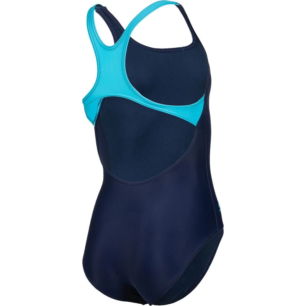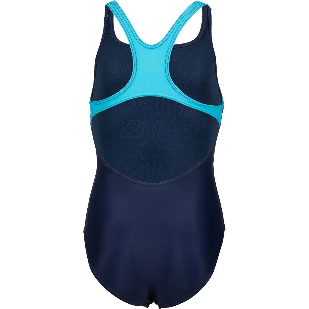 The sporty arena Graphic Swim Pro Back swimsuit for girls is ideal for young fitness swimmers who value high wearing comfort during training. Made of chlorine and salt water resistant MaxFit Eco material with integrated UV protection UPF50+. The 4-way stretch material offers a perfect fit, maximum freedom of movement and an extremely comfortable fit. It is the environmentally friendly further development of arena’s MaxFit material and contains recycled polyamide. The wide straps and the half-open back solution guarantee a secure hold. The softly lined front ensures a comfortable fit. Each component of the OEKO-TEX® STANDARD 100 has been tested on OEKO-TEX® certified materials for harmful substances and the product is harmless to human health. The test is carried out by independent OEKO-TEX® partner institutes based on the comprehensive catalog of criteria.