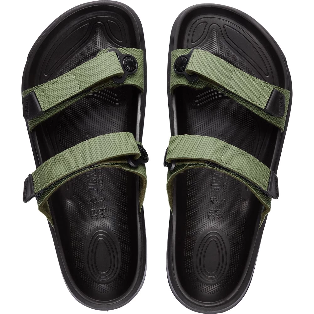 The pin buckles have been replaced by Velcro fasteners and the sole has been reinforced in the heel area. Perfect for all experience-oriented and active BIRKENSTOCK fans! The polyurethane sole is foamed in two layers on the footbed and is therefore very flexible, has a good grip and is particularly durable. The upper consists of the skin-friendly and hard-wearing synthetic material Birko-Flor®, which has been reinterpreted in a futuristic look.