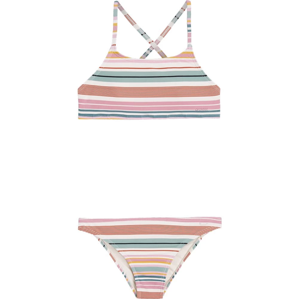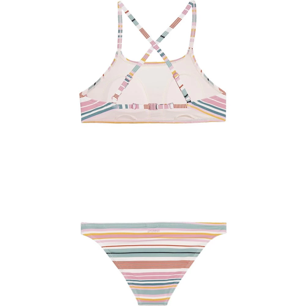 The colourful striped pattern is a real eye-catcher. The bralette top has a buckle at the back and adjustable straps at the shoulders and back. The bikini bottoms have a regular fit and waist. What’s more, the Caro Jr is part of Protest journey into sustainability: the fabric is made from recycled material; no PFCs were used in its manufacture. The Caro Jr by Protest is the perfect bikini for the beach.