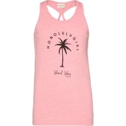 This beautiful, cool top is made of blended fabric and is extremely comfortable to wear – even on hot days. The racerback top impresses with its attractive strap details. The front is printed with a great summery design. The Maisy JR by Protest is the perfect top for this summer.