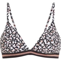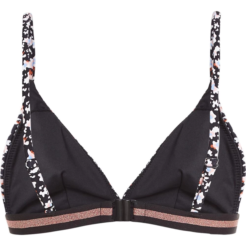 This gorgeous triangle bikinitop will change your summer. Printed with a great leopard skin design, the Mixhera is simple and beautiful. This bikini top forms part of Protests Mix&Match series. In this series Protest have different styles of bikini tops, tankinis and bottoms in all different sizes, which you can combine to create your very own beach look. The Mixhera has an elastic Lurex band that wraps around the body and sparkles in the sun. There are removable quick-dry foam cups to provide extra comfort and support. The straps can be worn two ways and that is either straight across the shoulders or crossed at the back. This bikini closes at the back with a buckle and there are adjustable shoulder straps. This bikini top is PFC-free in an effort to reduce the presence of this harmful chemical in the environment. Create your own perfect summer look with the Mixhera by Protest.