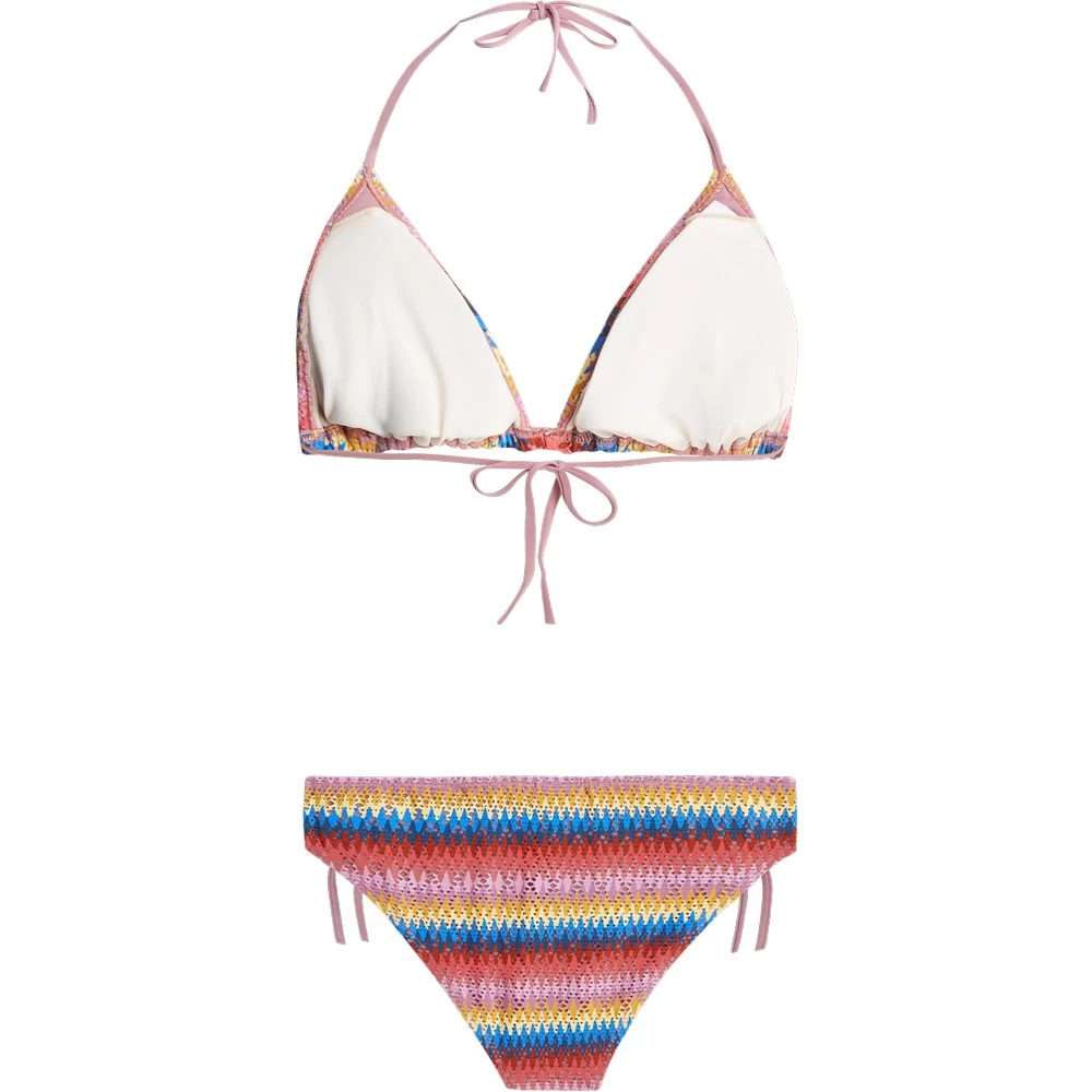This triangle bikini is truly an eye catcher. Made up of two layers, the top layer is a gorgeous lace fabric and under this is a solid colour lining. The bikini has removable quick-dry foam pads so that you can choose for extra support. Straps tie at the neck and around the body. There are decorative ties at the sides of the regular fit bikini bottom. The fabric is also PFC-free in an effort to reduce the use of this chemical and thereby its harm to the environment. The beautiful Bikini by Protest is made for your summer.