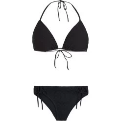 This triangle bikini is truly an eye catcher. Made up of two layers, the top layer is a gorgeous lace fabric and under this is a solid colour lining. The bikini has removable quick-dry foam pads so that you can choose for extra support. Straps tie at the neck and around the body. There are decorative ties at the sides of the regular fit bikini bottom. The fabric is also PFC-free in an effort to reduce the use of this chemical and thereby its harm to the environment. The beautiful Bikini by Protest is made for your summer.