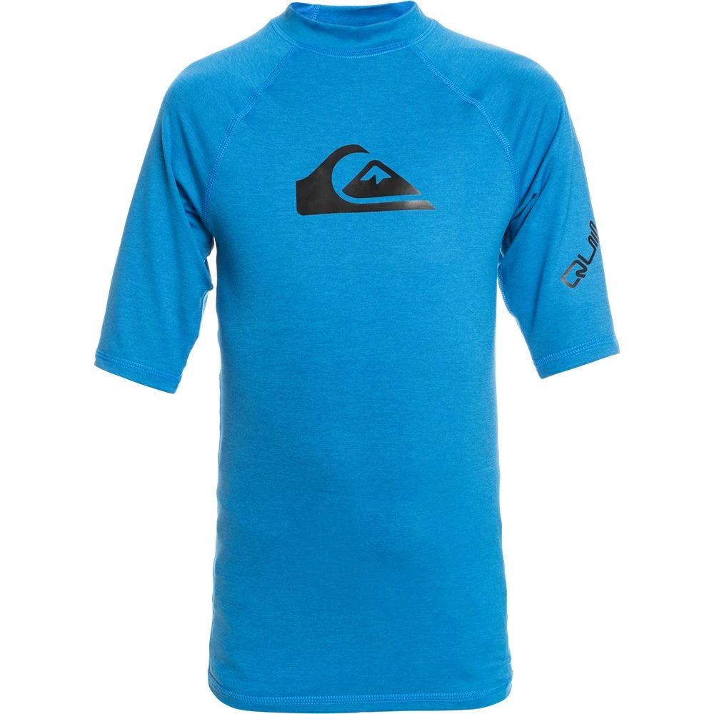 The Quiksilver All Time SS Swim Shirt is made from recycled polyester and offers UPF 50+ sun protection.